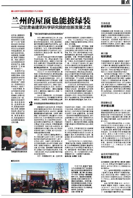 ? ?“什么是綠色建筑?并不是指一般意義的立體綠化、屋頂花園,而是指建筑的全壽命周期內(nèi),最大限度節(jié)約資源,節(jié)能、節(jié)地、節(jié)水、節(jié)材、保護環(huán)境和減少污染,提供健康適用、高效使用,與自然和諧共生的建筑。它是一種可持續(xù)發(fā)展建筑、生態(tài)建筑、回歸大自然建筑、節(jié)能環(huán)保建筑等?!眲②S說,其實綠色建筑涉及的面非常廣,是一個多專業(yè)交叉的學科,可以通過很多技術(shù)措施來達到綠色建筑的要求。目前,對于比較直觀的屋頂綠化也是他們研究的一個方向。本地綠色植被比起南方城市相差甚遠,要找到適合西北地區(qū)、適合蘭州屋頂種植的綠色植物且研究屋頂綠化對整個建筑節(jié)能性能的影響,是他們研究的目的。不久的將來,蘭州的屋頂也能出現(xiàn)更多的、適宜的綠色植被,對建筑的節(jié)能性能起到更加積極的作用。