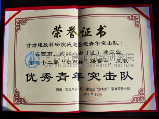 11月7日-10日,西南、西北八?。▍^(qū))建筑業(yè)第二十二屆“貢獻杯”聯(lián)賽總結(jié)表彰會暨青工工作研討會在云南建投集團舉行。我院岷縣應(yīng)急鑒定突擊隊的優(yōu)異表現(xiàn)得到了西南西北八省區(qū)建筑業(yè)青年的認可,榮獲優(yōu)秀青年突擊隊稱號,為我院和集團總公司爭得了榮譽。共青團云南省委副書記趙國良,集團公司黨委副書記、副董事長李家龍,甘肅建投集團黨委副書記、紀委書記張育謙,貴州建工集團黨委副書記程銳出席本次會議。