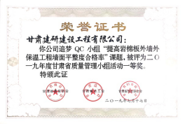 近日,從甘肅省質(zhì)量協(xié)會(huì)獲悉,建研建設(shè)公司4個(gè)小組喜獲2019年優(yōu)秀質(zhì)量管理小組一等獎(jiǎng)、二等獎(jiǎng)各2項(xiàng)。
