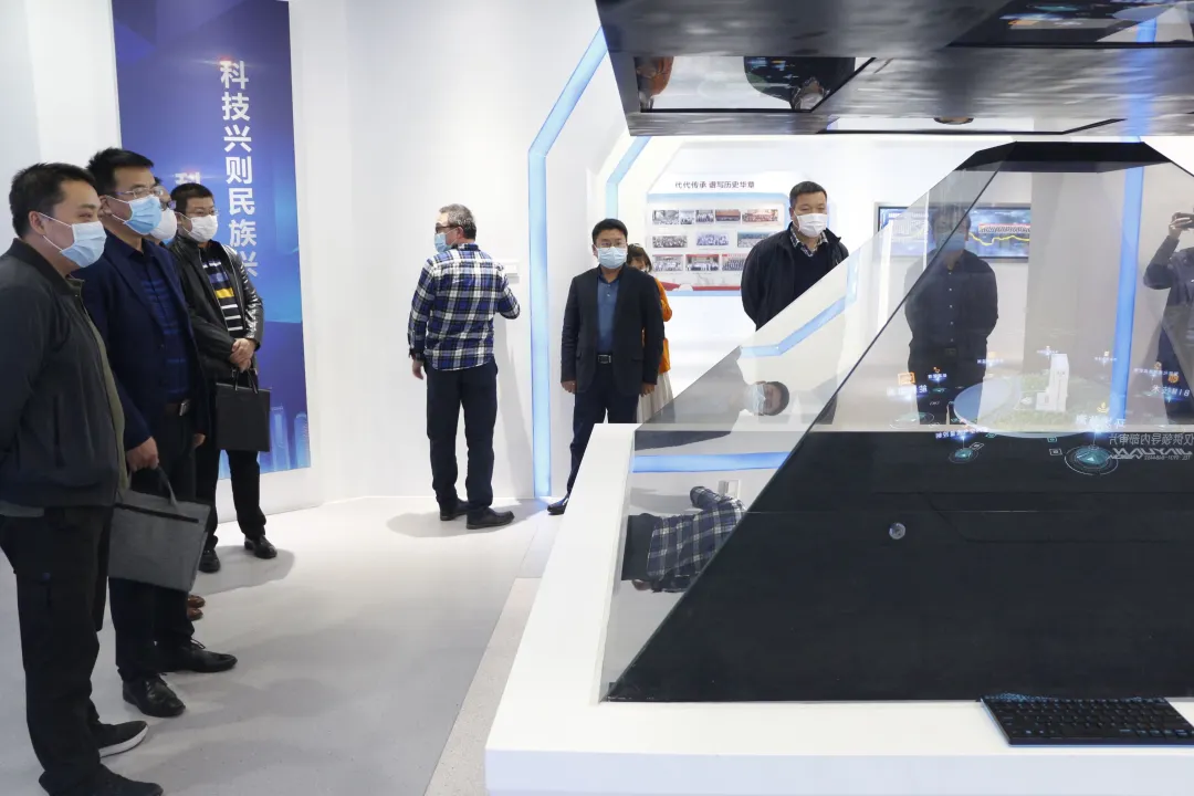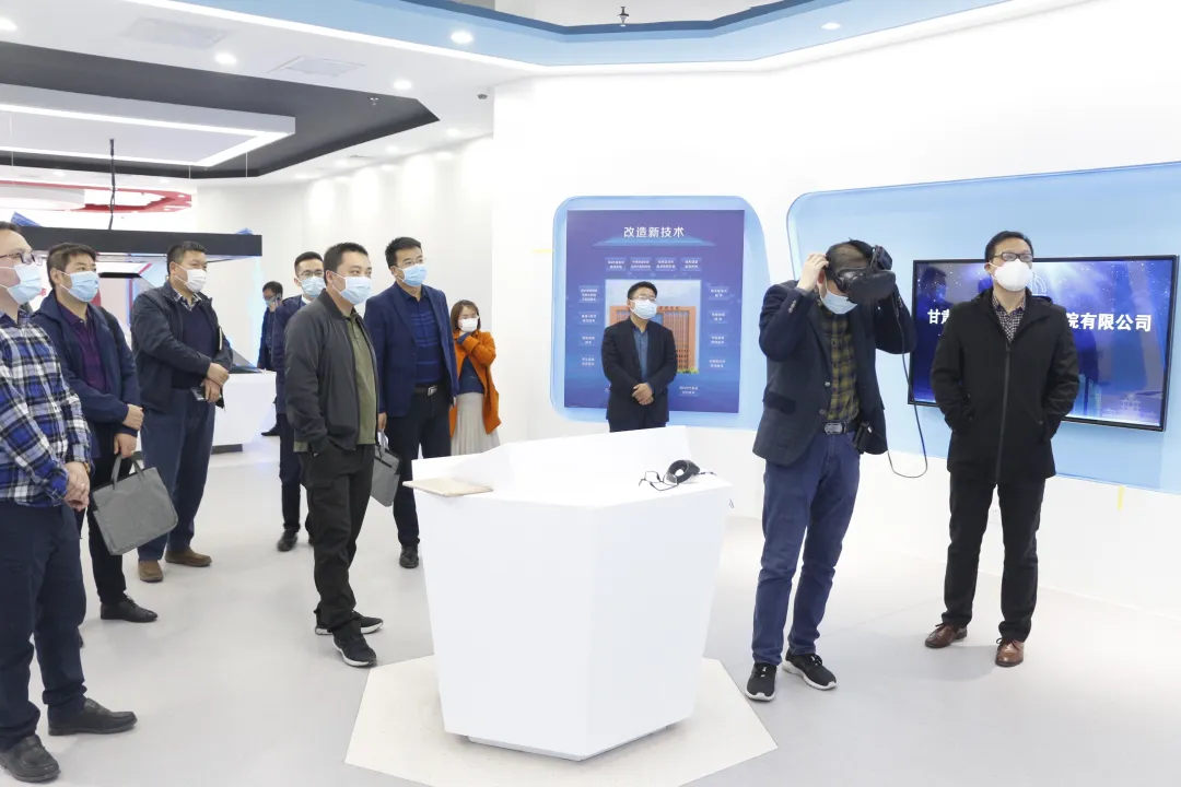 座談會前,在副總經(jīng)理袁寧的帶領(lǐng)下,副總經(jīng)理韓成海一行參觀了建研大廈一樓展廳,工作人員對建研大廈應(yīng)用的IBMS系統(tǒng)、BIM+VR、全息投影等十余項(xiàng)新技術(shù)進(jìn)行了詳細(xì)介紹。