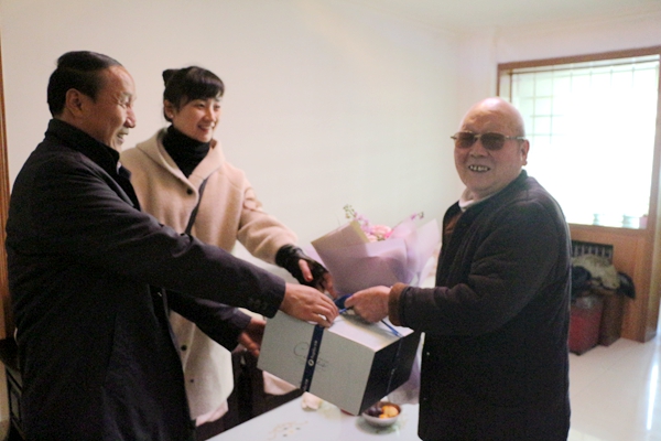11月25日是退休老人吳振東的生日,我院紀(jì)委書(shū)記、工會(huì)主席路遠(yuǎn),工會(huì)副主席周婷及黨群工作部等人員一行,帶著提前為老人訂制好的生日蛋糕和生日鮮花,來(lái)到老人家中為他送上祝福。吳振東老人對(duì)院里送來(lái)的關(guān)心和溫暖表示十分感謝。工會(huì)主席路遠(yuǎn)親切詢(xún)問(wèn)老人的健康情況,并代表單位祝愿老人身體健康、生日快樂(lè)!