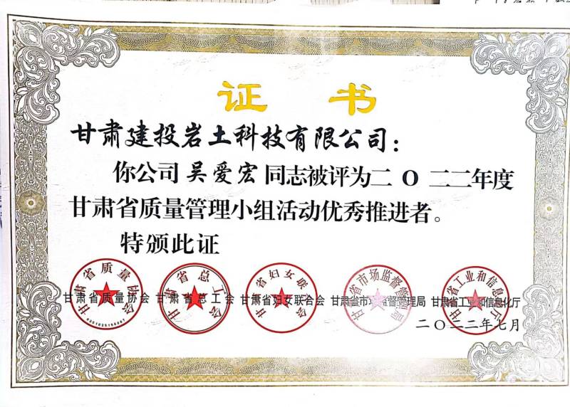 近日,由甘肅省質(zhì)量協(xié)會、甘肅省總工會、甘肅省婦女聯(lián)合會、甘肅省市場監(jiān)督管理局、甘肅省工業(yè)和信息化廳聯(lián)合舉辦的2022年度質(zhì)量管理小組活動成果競賽評審結(jié)果發(fā)布,甘肅省建筑科學(xué)研究院甘肅建投巖土科技取得了優(yōu)異的成績。“研制含水紅砂巖地層基坑支護噴錨施工技術(shù)”課題獲得省級特等獎,“提高基坑支護鋼管樁一次性施工合格率”課題獲得省級一等獎,“降低基坑支護土釘墻細骨料浪費率”課題獲得省級二等獎。同時,兩名科技工作者分別獲評“甘肅省質(zhì)量管理小組活動卓越領(lǐng)導(dǎo)者”“甘肅省質(zhì)量管理小組活動優(yōu)秀推進者”稱號。